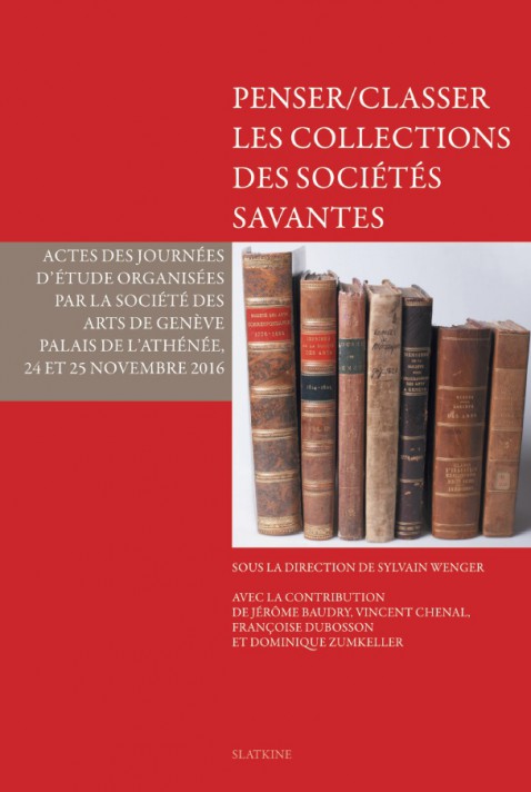 Silvain Wenger (ed.), Penser/ Classer les collections des sociétés savantes. Actes des journées d'étude organisées par la Société des Arts au Palais de l'Athénée les 24 et 25 novembre 2016, Genève, Slatkine, 2018.