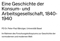 PD Dr. Peter-Paul Bänziger von der Uni Basel nähert sich im Rahmen des Forschungskolloquiums der Geschichte der vormodernen und modernen Welt an der Universität Luzern der Thematik historisch an und referiert am 11. Mai über die "Geschichte der Konsum- und Arbeitsgesellschaft, 1840-1940".