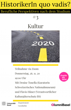 Dieses Semester wird das Thema "Museen/Kulturschutz" behandelt, mit Denise Tonella, Ausstellungskuratorin am Schweizerischen Nationalmuseum, und Flavio Hänger, Verantwortlicher für den Kulturgüterschutz im Kanton Basel-Stadt.