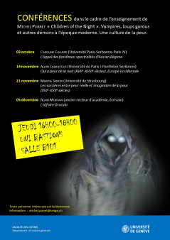 Conférences dans le cadre de l'enseignement de Michel Porret "Children of the Night". Vampires, loups garous et autres démons à l'époque moderne. Un culture de la peur. Conférence de Alain Cabantous (Université de Paris I-Panthéon-Sorbonne)