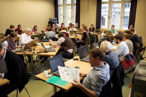 Die Werbemassnahmen zeigten Wirkung: Bereits kurz nach Start des HaCkappelli um 14:00 Uhr waren sämtliche Laptops im Hörsaal besetzt, was bis zum Ende der Veranstaltung so bleiben sollte. Insgesamt waren mehr als 60 Teilnehmende vor Ort, während sich verschiedene User auch online und teilweise aus dem Ausland beteiligten. Neben Studierenden und Doktorierenden fanden sich unter den «Hackern» Professoren, Alumni und Alumnae sowie Wissenschaftler anderer Universitäten.