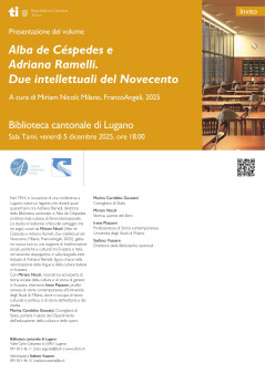 Nel 1954, in occasione di una conferenza a Lugano, nasce un legame che durerà quasi quarant’anni, tra Adriana Ramelli, direttrice della Biblioteca cantonale, e Alba de Céspedes, scrittrice italo-cubana di fama internazionale. Lo studio e l’edizione critica del carteggio che ne seguì, curati da Miriam Nicoli (Alba de Céspedes e Adriana Ramelli. Due intellettuali del Novecento, Milano, FrancoAngeli, 2025), gettano nuova luce su una stagione di trasformazioni sociali, politiche e culturali tra Svizzera e Italia nel secondo dopoguerra, e sulla biografia intellettuale di Adriana Ramelli, figura chiave nella valorizzazione della lingua e della cultura italiana in Svizzera.