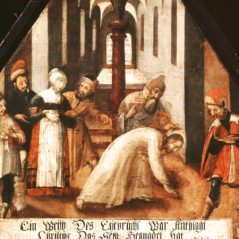 Das "Gleichnis der Ehebrecherin" ist eine vielzitierte Bibelstelle, die sich auch als Kunstmotiv hoher Beliebtheit erfreute: Sex and crime in a nutshell. So durfte die Szene nicht fehlen auf dem Bilderweg der Hofbrücke, der im 16. Jahrhundert in Luzern entstand. Welche Vorstellungen von Intimität, Moral und gerechter Strafe werden darin transportiert?