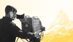 Photo caméraman lors du tournage de l’émission : L’ascension en direct du Cervin (14.07.1965, émission réalisée conjointement avec la BBC et la RAI) © RTS Radio Télévision Suisse – 1965