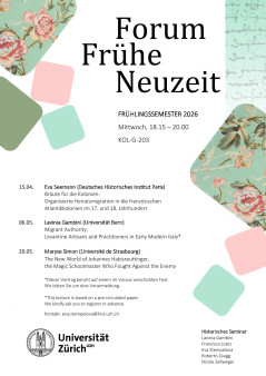 Vortrag von Maryse Simon (Université de Strasbourg) im Rahmen des Forums Frühe Neuzeit FS26 am Historischen Seminar der Universität Zürich.