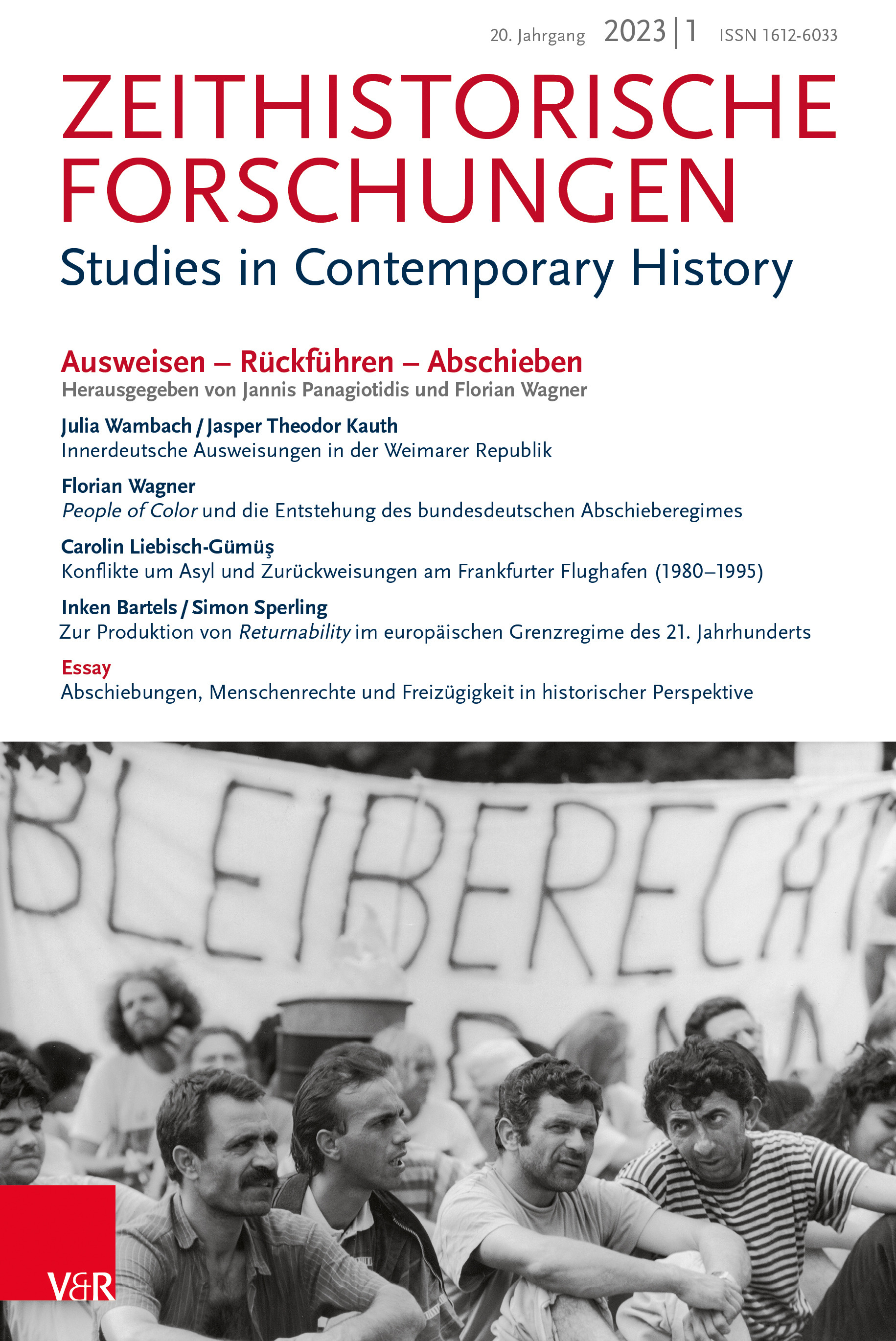 Two special issues have recently been published that deal with the history of deportation in Germany and Switzerland, two democratic states: Geschichte(n) der Deportation. Diskurse, Praktiken und Infrastruktur im 20. und 21. Jahrhundert in der Schweiz (Itinera 52) and Ausweisen – Rückführen – Abschieben. Migration umkehren? Ausweisungen und Abschiebungen im liberalen Deutschland (Zeithistorische Forschungen 1/2023).