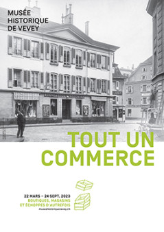 Tout un commerce présente des photographies, prises entre la fin du 19e et le milieu du 20e siècle, mettant en évidence la devanture de boutiques et de magasins veveysans. Souvent capturées avant ou après une transformation de la façade, ces images racontent des moments clés de l'histoire d'un commerce. Elles témoignent de la fierté des propriétaires et des employés, soulignent la prospérité du lieu ou informent d'une fermeture. Ces prises de vue, qui révèlent vitrines rétro et articles désuets, dévoilent également des paysages urbains et des ruelles parfois méconnaissables.