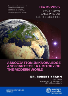 Dans le cadre du séminaire du professeur Antoine Acker "Introduction à l'histoire transnationale et globale: concepts, approches, débats", vous êtes cordialement invités à la conférence Association in knowledge and practice: a history of the modern world que donnera Dr. Robert Kramm (ETH Zurich, acting Chair for the History of the Modern World)