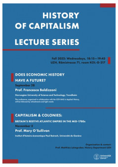 History of Capitalism Lecture Series: Prof. Mary O’Sullivan, Institut d’histoire économique Paul Bairoch, Université de Genève Prof. Mary O’Sullivan has explored the history of corporate governance, business firms and financial markets. After publishing Dividends of Development: Securities Markets in the History of U.S. Capitalism (2016), her current research deals with the role of profits in the early industrial era.
