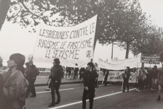 Illustration: Manifestation du 31 mars 1986 à Genève dans le cadre de la huitième Conférence de l'ILIS. Fonds Claire Sagnière, Lestime.
