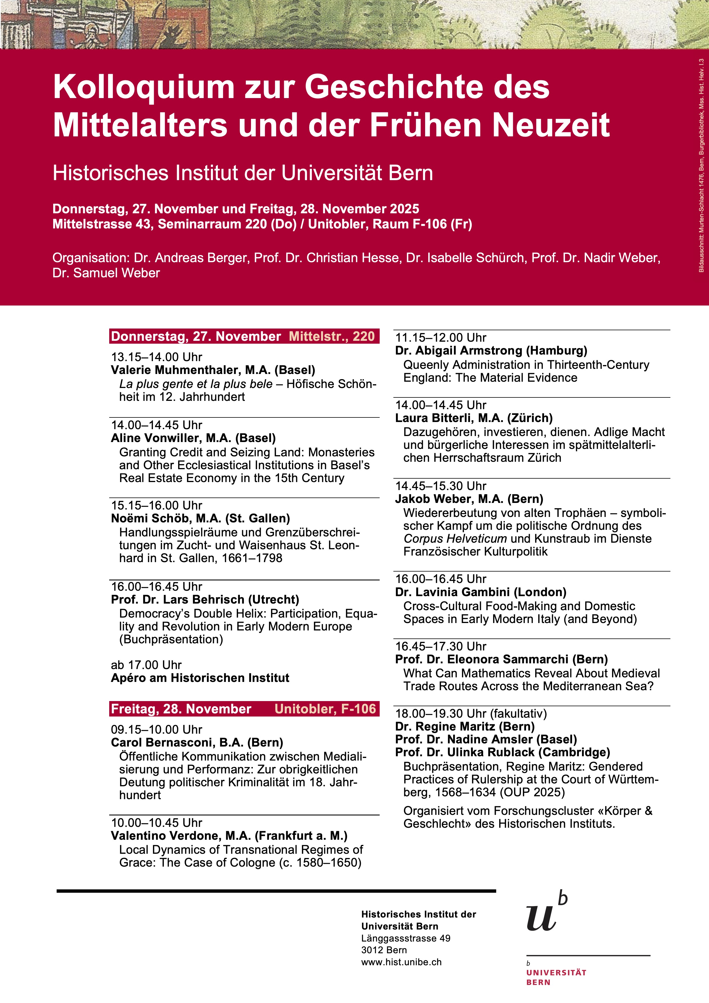 Kolloquium zur Geschichte des Mittelalters und der Frühen Neuzeit des Historischen Instituts der Universität Bern