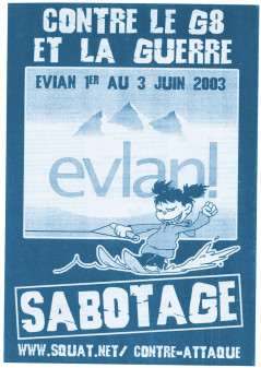Illustration: Contre-attaque, « Contre le G8 et la guerre », tract, 21 x 30 cm, 2003. Fonds Olivier de Marcellus, 056_ODM-S04-SS07-D01.