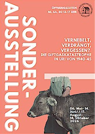 Die Sommerausstellung «Vernebelt, verdrängt, vergessen? – Die Giftkatastrophe in Uri von 1940–1945» ist vom 6. Mai bis zum 14. Juni sowie vom 15. August bis zum 14. Okto- ber geöffnet. Die Vernissage findet für Vereinsmitglieder am Dienstag, 5. Mai, um 19.00 Uhr statt. Bei der Ausstellung handelt es sich um ein Projekt der Urnerin Chiara Gisler, das im Rahmen ihrer Masterarbeit entstanden ist. Gezeigt wird sie in der Reihe «Frischer Wind im Museum», mit der das Historische Museum Uri jungen Urnerinnen und Urnern sowie Personen mit einem Forschungsthema mit Bezug zu Uri eine Plattform für Sonderausstellungen bietet.