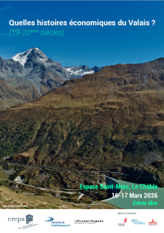 Se déroulant les 16 et 17 mars 2026, co-organisé par UniDistance Suisse et le Centre Régional d'Etudes des Populations Alpines (CREPA) et avec le soutien du Service de la culture de l’Etat du Valais, de la Société Académique du Valais et du Musée de Bagnes, ce colloque offre un panorama des recherches récentes sur différents secteurs de l’économie du Valais - agriculture, tourisme, industrie, finance - à la période contemporaine (19ème-20ème siècles). Il vise également à intégrer l’histoire économique valaisanne dans une perspective transalpine et à faire dialoguer le cas valaisan avec les recherches en cours sur d’autres cantons. Enfin, ce colloque contribue à établir des ponts entre les institutions valaisannes de recherche et préservation du patrimoine et différentes universités suisses ou localisées dans d’autres régions des Alpes.